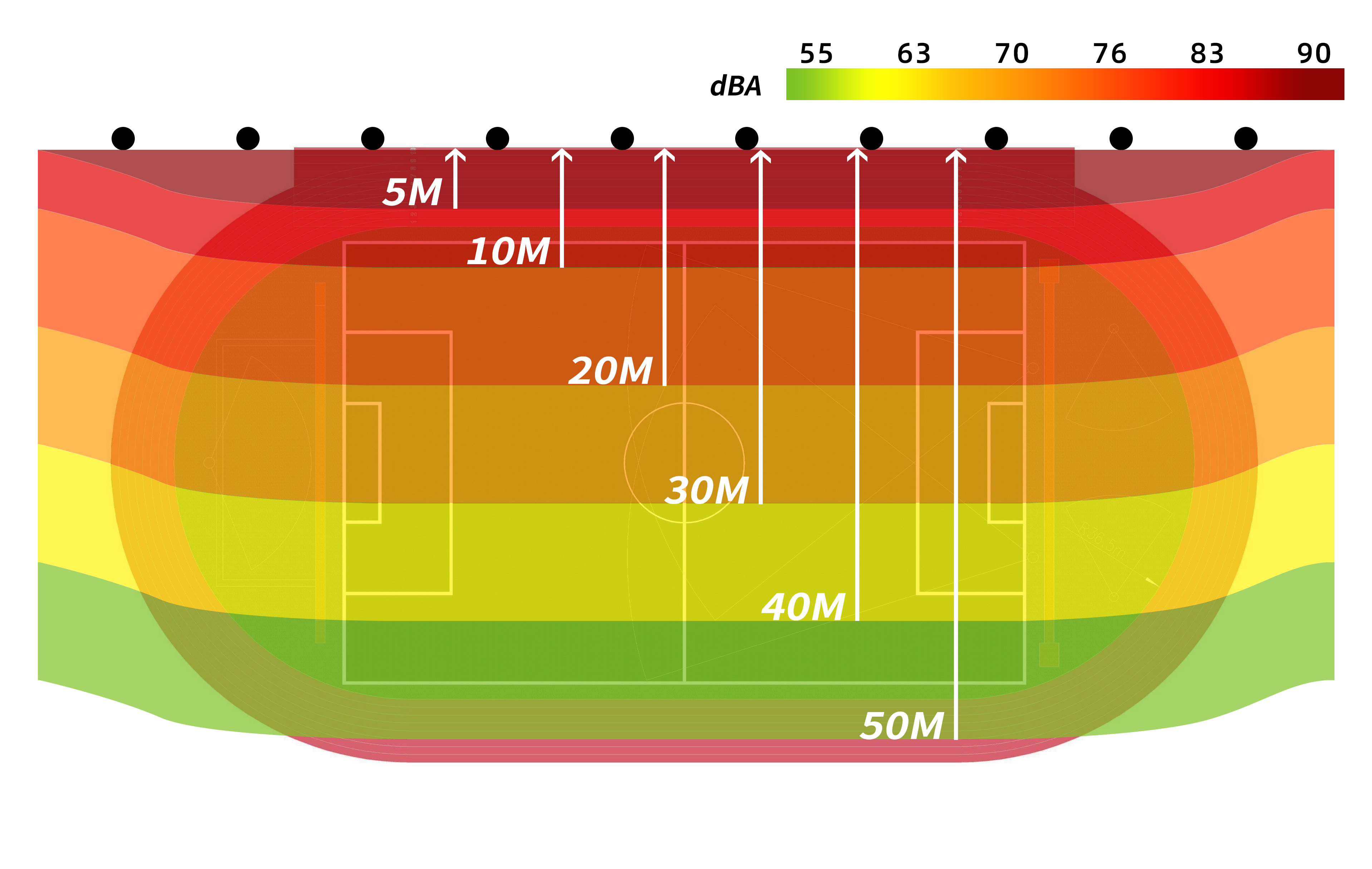 操場聲場對周邊居民樓干擾降低至環(huán)保值以下。