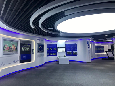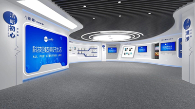 展廳根據內容主題分成了企業篇、產品應用篇和展望篇三大主題區域。