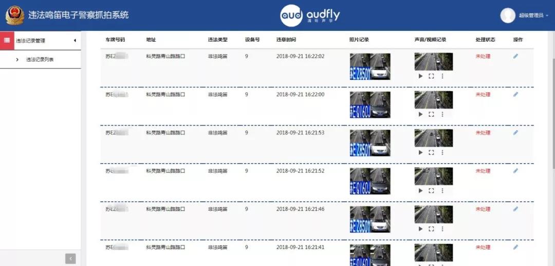 鳴笛捕捉準確率超過95%,系統數據處理平臺快速反應、高效解析、反復核準信息,確保最終推送到執法人員的違法信息真實準確,杜絕錯判誤判。