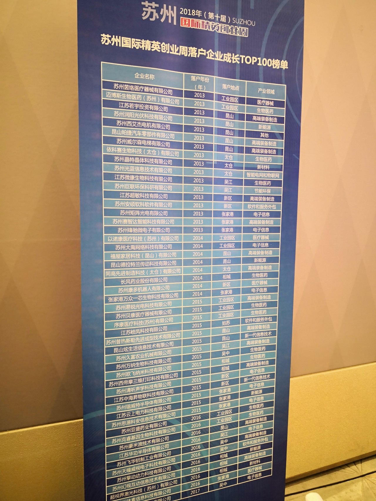 “蘇州國際精英創(chuàng)業(yè)周落戶企業(yè)成長TOP100榜單”