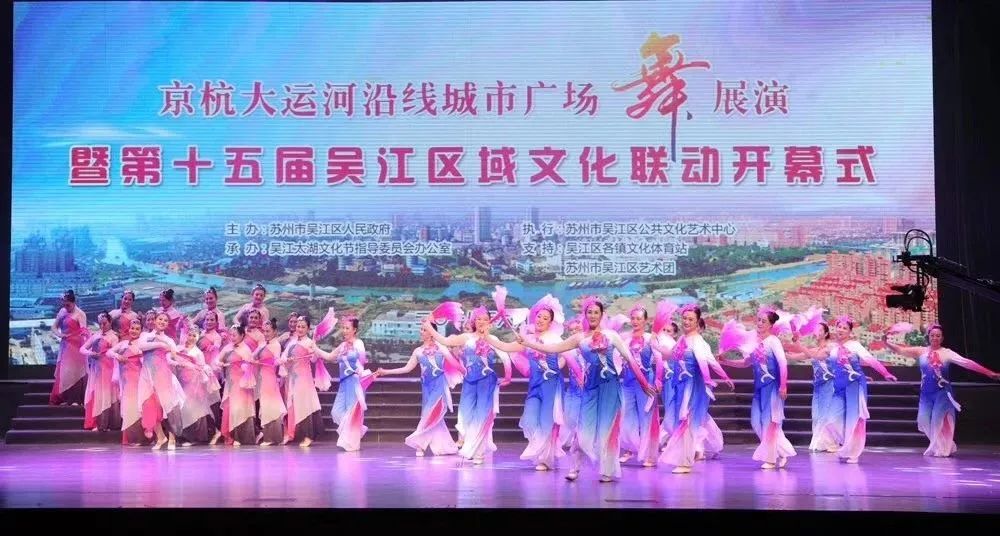 6月15日,京杭大運河沿線城市廣場舞展演暨第十五屆吳江區(qū)域文化聯(lián)動在蘇州市吳江人民劇院開幕,來自北京、天津、河北、山東、江蘇、浙江六省(市)的15支廣場舞團(tuán)隊400多名演員齊聚蘇州吳江。