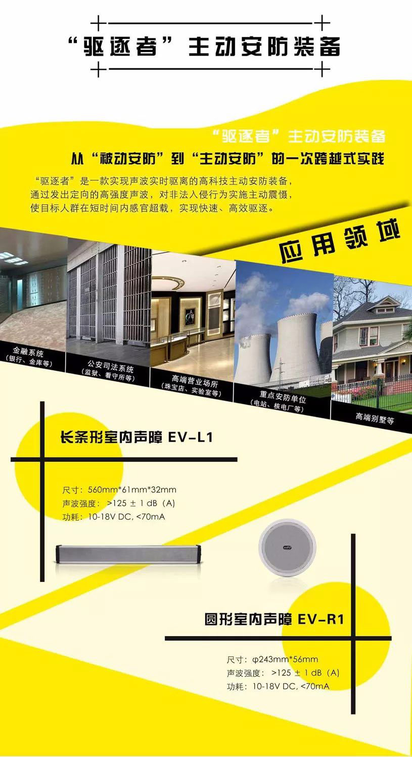 研發(fā)了定向強(qiáng)聲裝置、“驅(qū)逐者”聲波驅(qū)離裝備等適用于軍事、民用的主動安防系統(tǒng),為國家、為社會提供了新型高科技安防手段,為提高全民安全感建設(shè)提供了技術(shù)支持;