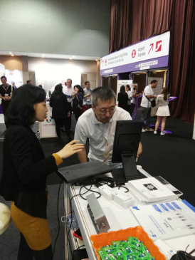 來自香港的toni lin高興地表示,聚音寶可以幫助他們解決商場外面音樂會的噪音問題;日本客戶說道,在廣告行業,聚音寶定向音響大有用武之地;來自美國一家公司的CEO Michael  Yap更是現場發出邀約。