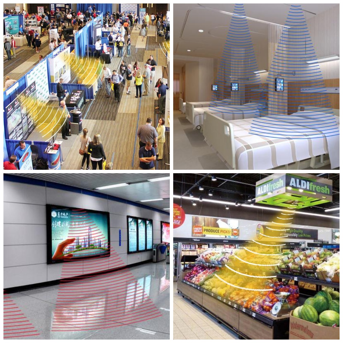 定向揚(yáng)聲設(shè)備在各類場景中廣泛應(yīng)用,如展廳、銀行、學(xué)校、酒店、圖書館、電子顯示屏、家居、商場超市等都可以使用。