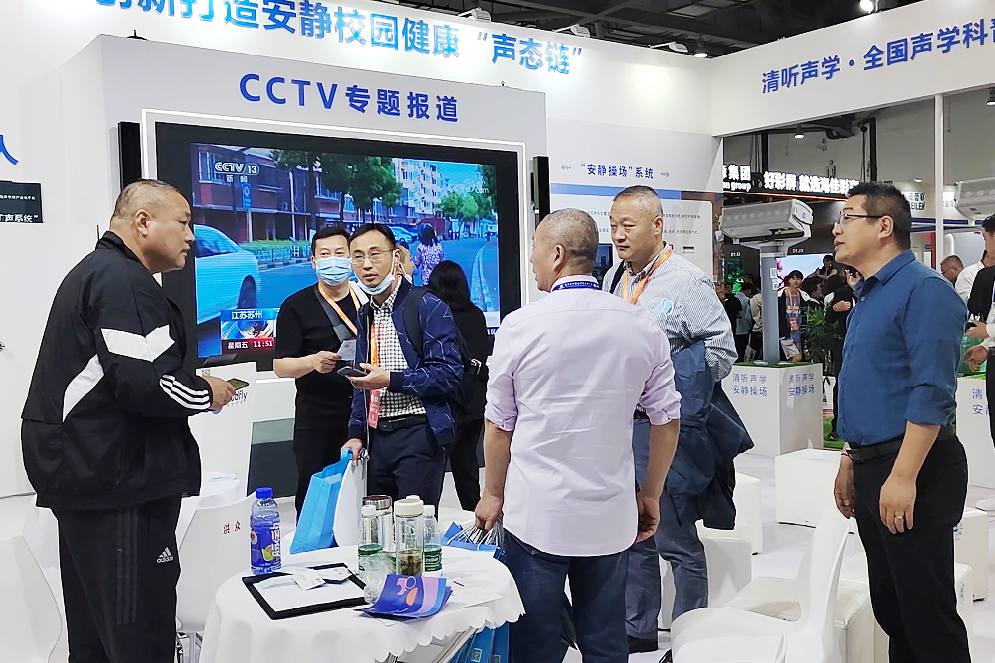 展會進入如火如荼的第二天,清聽聲學展廳依舊人聲鼎沸,盡顯聲學+教育創新應用的標桿實力。期間,蘇州高新區教育局基礎裝備處領導、新建?;I備組領導,安徽樅陽縣教育局、湖州市教育局、杭州西湖區教育局等一行領導,以及深圳中小學校長團紛紛蒞臨清聽聲學展位,現場參觀體驗安靜校園產品。