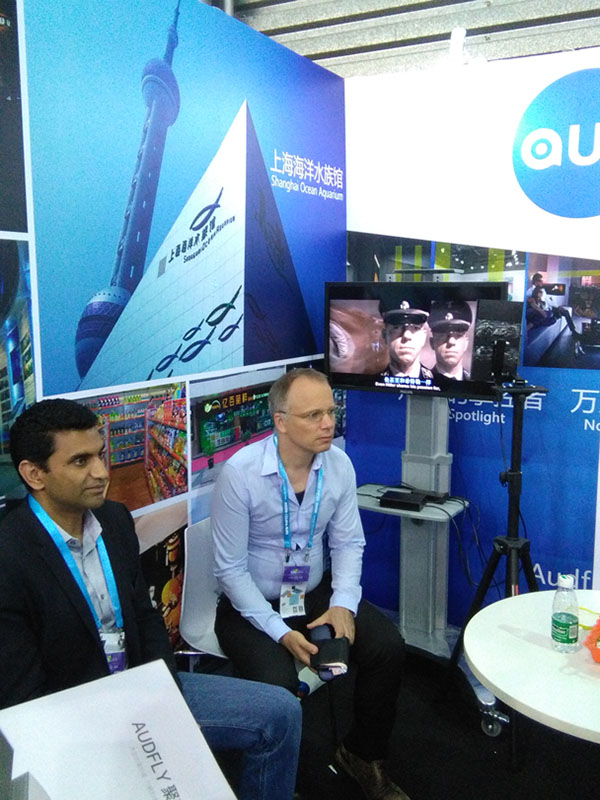 參觀者向我們工作人員咨詢有關(guān)聚音寶的各種細(xì)節(jié)